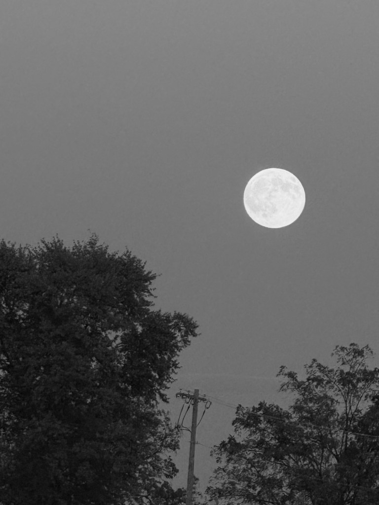 a visit with a tree as the harvest moon rose